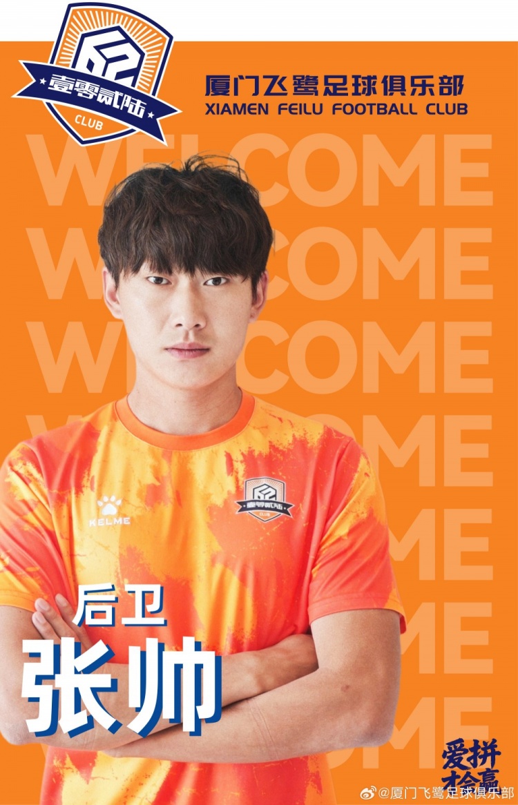 经俱乐部与球员本人友好协商并达成一致,现正式宣布,张帅加盟厦门飞鹭足球俱乐部,新赛季将代表球队征战各项赛事。