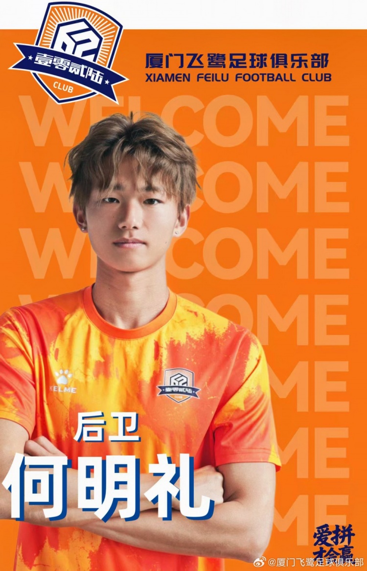 欢迎何明礼加盟厦门飞鹭足球俱乐部,期待他在新赛季快速成长,为球队贡献自己的力量。